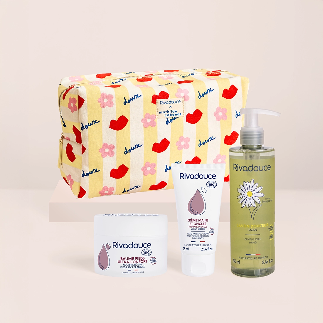 Ce coffret chouchoute les mains et les pieds tout en douceur. Une attention idéale à offrir ou à s’offrir, pour traverser l’hiver avec une peau protégée et nourrie. Le tout dans une jolie trousse signée Mathilde Cabanas.