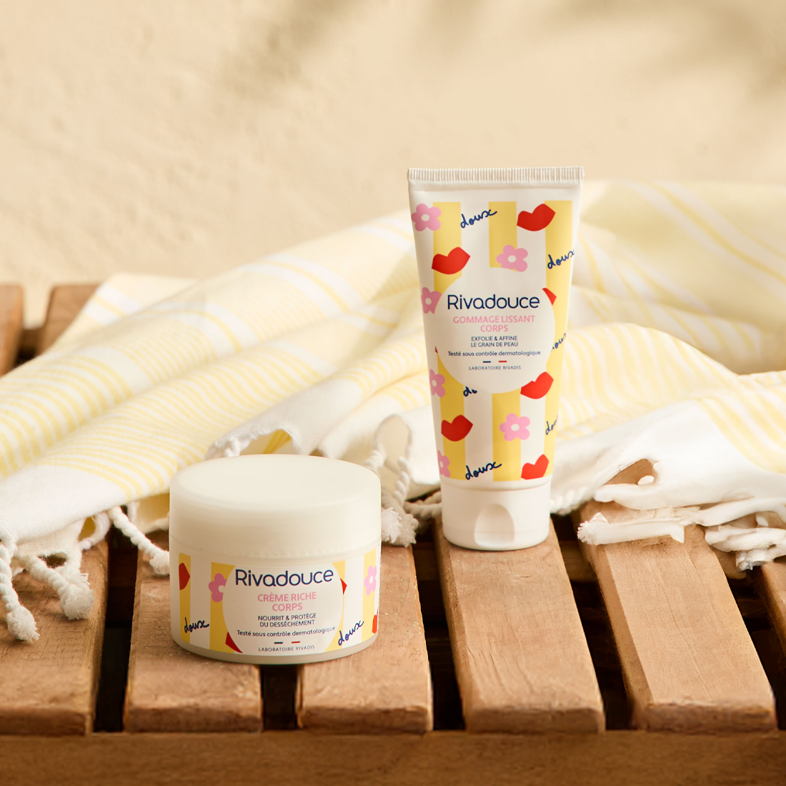 Craquez pour notre duo de l'été Rivadouce x Mathilde Cabanas en édition limitée. Composé du gommage lissant corps et de la crème riche corps pour une peau douce et éclatante.