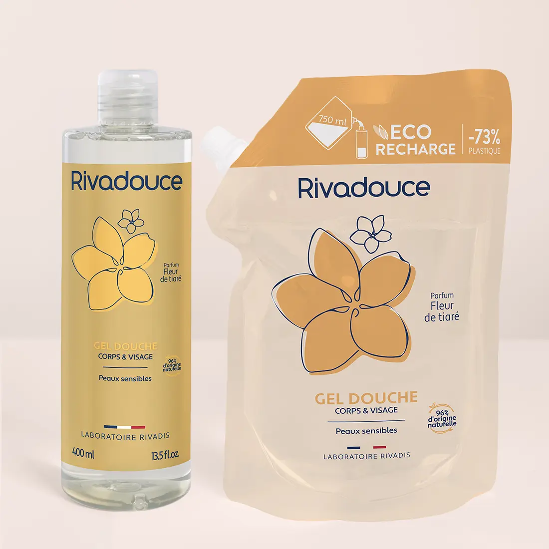 Ce gel douche au parfum exotique de Fleur de Tiaré lave et préserve la peau de toute la famile dès 3 ans.